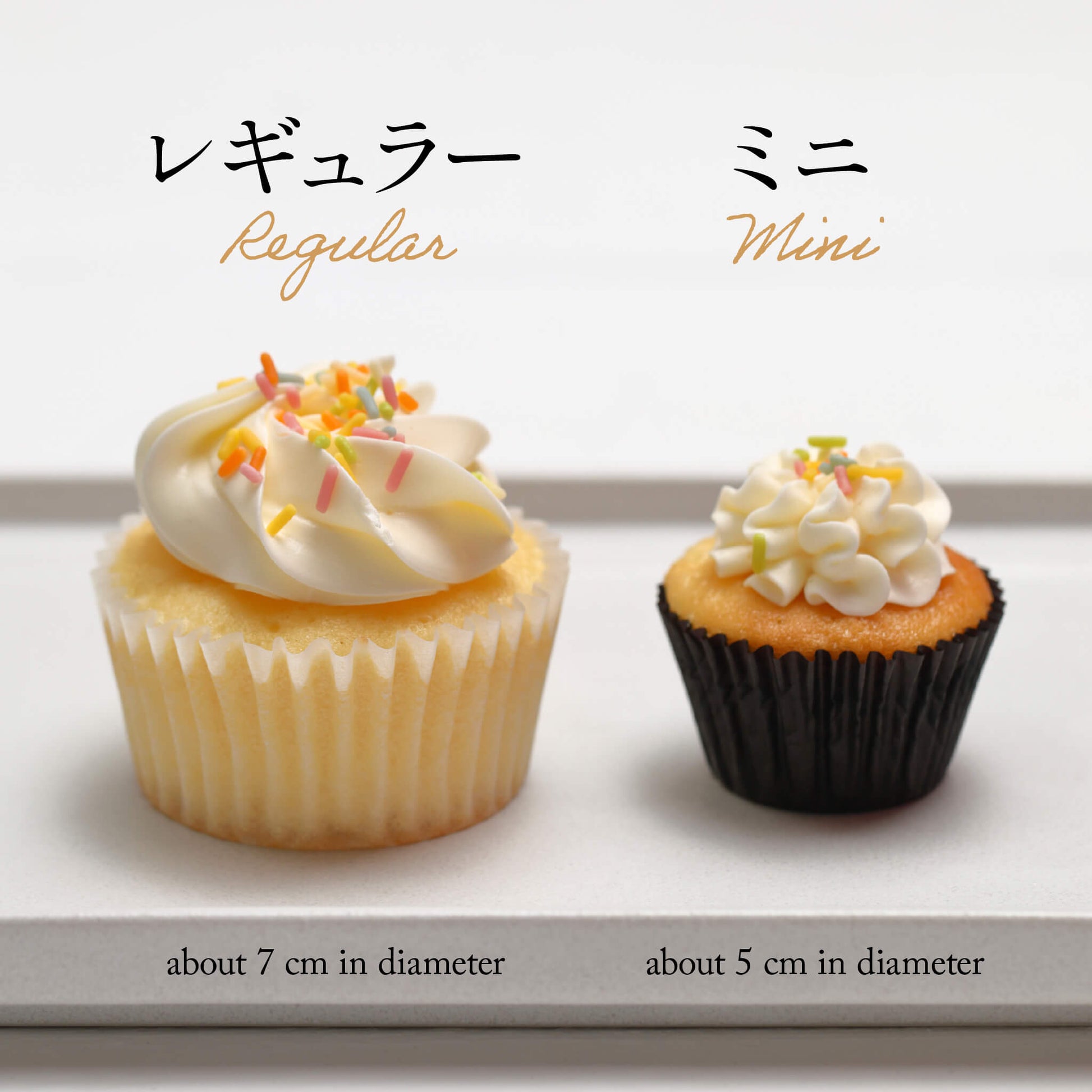 | 商品詳細 | しっとりしながらもふんわり軽いプレーンのスポンジに、優しい甘さのバニラクリームをたっぷり絞り、カラフルなチョコスプレーで彩った、一番シンプルなバニラカップケーキを、ミニサイズ(24個入り)でお作りしました。 小さなお子さまでも食べやすいミニサイズなので、ご自宅等でのパーティーはもちろん、保育園・幼稚園でのパーティーの際にもよくご利用いただいております。 |