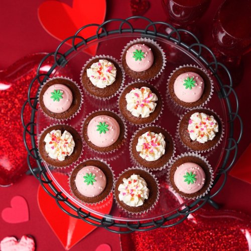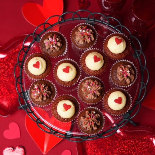 These mini cupcakes are ideal for sharing with loved ones, bringing to parties, or enjoying at a sophisticated tea party. The adorable little heart sprinkles on the Red Velvet cupcakes add a touch of sweetness, making them a lovely way to express your affection.