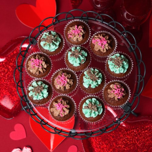 These mini cupcakes are ideal for sharing with loved ones, bringing to parties, or enjoying at a sophisticated tea party. The adorable little heart sprinkles on the Red Velvet cupcakes add a touch of sweetness, making them a lovely way to express your affection.