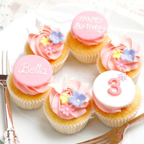 12 Pink Vanilla cupcakes with sugarcrafts (4 Butterflies, 4 Flowers)
